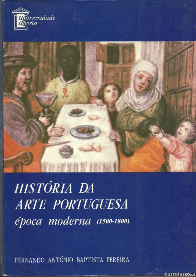 HISTÓRIA DA ARTE PORTUGUESA. Época Moderna (1500-1800). *** Fernando António Baptista Pereira *** Lisboa: Universidade Aberta, 1992. Colecção: Textos de Base - 52. (29,5 x 21 cm.) com 257 + [3] pp. (onde se incluem várias folhas desdobráveis). Profusamente ilustrado a p/b. e a cores. Capa flexível, com badanas. Exemplar razoável. Capa com marcas de manuseamento, alguns vincos discretos e um pequeno desgaste nas margens e na lombada, mas, de um modo geral, ainda em boas condições e limpa. Páginas bem conservadas, mas as primeiras 92 apresentam numerosos trechos sublinhados e anotações marginais a lápis. Algumas (não muitas) apresentam também marcas de clip oxidado na margem superior. *** Primeira edição deste manual de História da Arte Portuguesa do Período Moderno (1500-1800), «que privilegiou a divisão por sectores artísticos (arquitectura, escultura, pintura, etc.) como forma de permitir um mais claro entendimento do percurso diacrónico de cada ramo da actividade artística. Além dos três sectores canónicos já mencionados previram-se capítulos sobre a azulejaria e a talha - indispensáveis na época considerada - sobre as chamadas artes decorativas (ourivesaria, mobiliário e cerâmica) e sobre o impacto do encontro de culturas entre o oriente e o ocidente na produção artística deste período. Uma introdução procura situar globalmente a produção artística na duração histórica concreta que a originou e condicionou.» (Índice nas imagens 5, 6 e 7). *** Portes: envio gratuito em correio normal (tarifa especial para livros) * envio em correio registado: 1,70