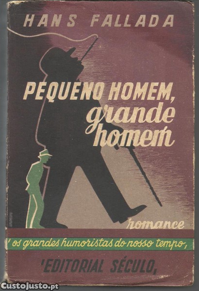 PEQUENO HOMEM[,] GRANDE HOMEM e Volta Tudo ao Contrário. Romance. *** Hans Fallada *** Título dêste livro no original: «Kleiner Mann, Grosser Mann - Alles Vertauscht *** Tradução de Campos Lima *** Lisboa: Editorial Seculo, [Sem ind. de ano: provavelmente 1943 ou 1944]. Colecção: Os Grandes Humoristas do Nosso Tempo. (19,5 x 12,5 cm.) com 371 + [1] pp. Capa flexível, com badanas. Exemplar razoável. Capa com marcas de manuseamento, manchas ligeiras, pequenos vincos e um pouco gasta nas margens, na lombada (especialmente nas extremidades) e nas charneiras, apresentando mesmo algumas esfoladelas superficiais na parte colorida do papel. Apesar de acusar o uso e algum envelhecimento, de um modo geral, está ainda bastante apresentável. Páginas globalmente bem conservadas e limpas, embora se encontrem ligeiramente amarelecidas e apresentem algumas pequenas manchas de acidez (raras), tudo muito devido à qualidade do papel utilizado. *** Provável primeira e única edição portuguesa deste romance de fundo humorístico, de Hans Fallada, um dos mais importantes escritores alemães da primeira metade do século XX, que manteve com o regime Nazi uma relação complicada de proximidade e afastamento. Pouco comum. *** Portes: envio gratuito em correio normal (tarifa especial para livros) * envio em correio registado: 1,70