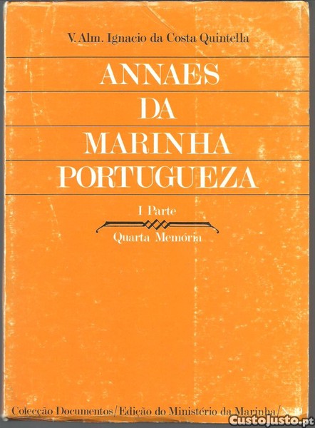 ANNAES DA MARINHA PORTUGUEZA. I Parte - Quarta Memoria. *** Vice-Almirante Ignacio da Costa Quintella [Conselheiro d'Estado Honorario, Conselheiro do Real Conselho da Marinha e Socio Honorario da Academia Real das Sciencias] *** Lisboa: Ministério da Marinha, 1975. Colecção Documentos - 19. (23 x 16,5 cm.) com [4] + 266 + [2] pp. Capa flexível, com badanas. Exemplar razoável. Capa envelhecida, com evidentes marcas de uso, perdas de cor em vários pontos, vincos, manchas ligeiras e um pouco gasta e amachucada nas margens e na lombada. Páginas bem conservadas e limpas, apresentando apenas um ligeiro amarelecimento, próprio do papel e da passagem do tempo, uma ou outra pequena mancha (raras e de muito reduzida importância) e alguns pequenos vincos no canto superior externo das últimas folhas. *** Provável segunda edição absoluta (primeira na editora) desta obra originalmente publicada em dois tomos (1839-1840), na Typ. da Academia Real das Sciencias de Lisboa, comportando o Tomo I, a Primeira, Segunda e Terceira Memórias e o Tomo II a Quarta Memória. Lê-se numa nota sobre o Autor: «O vice-almirante Inácio da Costa Quintela escreveu os Annaes da Marinha Portugueza, conforme diz na prefação, reunindo o que achou espalhado por vários autores e escolhendo nos pontos controversos o que lhe pareceu mais provável. Das três partes prometidas, apenas foi publicada a primeira, dividida em quatro memórias (...). Assim, dos seus estudos sobre história da Marinha somente se toma conhecimento dos que tratam das guerras, conquistas e viagens dos portugueses na Europa, na América e África Ocidental desde o ano de 1095, no começo do governo do conde D. Henrique, até à aclamação de D. João IV, em 1640. Esta Quarta Memória, compreende o período que vai desde o ano de 1581 até à aclamação do Rei D. João IV, em 1640. *** Portes: envio gratuito em correio normal (tarifa especial para livros) * envio em correio registado: 1,70