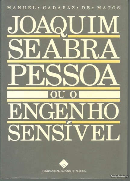 JOAQUIM SEABRA PESSOA OU O ENGENHO SENSÍVEL. *** Manuel Cadafaz de Matos *** Prefácio de José Augusto Seabra *** Porto: Fundação Eng. António de Almeida, MCMLXXXVIII [mas, na verdade, 1990]. (21 x 15 cm.) com 148 + [4] pp. Com várias ilustrações a p/b. Capa flexível, com badanas. Exemplar razoável. Capa com marcas de manuseamento, vincos (inclusive de pressão) e um ligeiro desgaste nas margens e na lombada, mas, de um modo geral, ainda muito apresentável. Páginas bem conservadas e limpas, mas na primeira página e no canto superior direito do anterrosto apresenta carimbos de biblioteca (ver imagens7 e 8). *** Primeira edição de um trabalho consagrado à vida e personalidade, muito pouco conhecidas, daquele que foi o pai de Fernando Pessoa e faleceu precocemente, vitimado pela tuberculose. Inclui a correspondência que manteve com Madalena Nogueira Pessoa, que viria ser sua esposa e mãe de Fernando Pessoa. (Índice na imagem 5). De acordo com uma nota do Autor, inserta no princípio do livro, apesar da data impressa no rosto (1988), o livro só terá saído no início de 1990, devido a problemas relacionados com a sua composição, justificando-se a colocação daquela data pelo facto de o livro ter sido concebido no espírito das comemorações do centenário do nascimento de Fernando Pessoa. Livro muito interessante e com grande relevância no quadro da bibliografia passiva pessoana. *** Portes: envio gratuito em correio normal (tarifa especial para livros) * envio em correio registado: 1,70