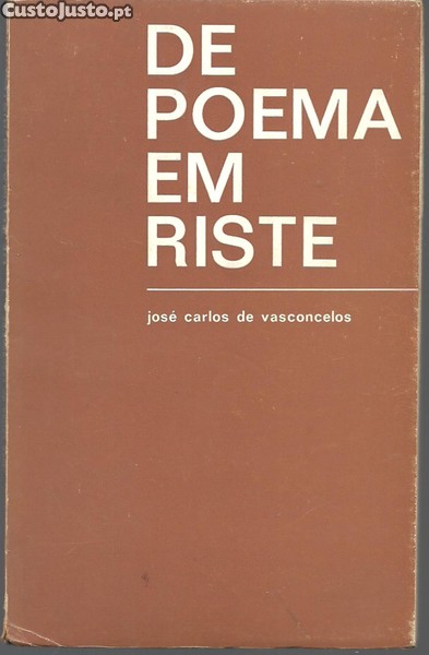DE POEMA EM RISTE. *** José Carlos de Vasconcelos *** [Sem ind. de local]: Edição do Autor, 1970. (Composto e impresso nas oficinas da Atlântida - Coimbra). (18 x 11,5 cm.) com 69 + [5] pp. Ilustrado com um retrato do autor a p/b. Capa flexível. Exemplar razoável. Capa com s marcas de manuseamento, pequenas perdas de cor em alguns pontos, pequenas manchas e um pouco gasta nas margens e na lombada. Apesar de tudo, de um modo geral, está ainda muito apresentável. Páginas bem conservadas e limpas, embora as primeiras e as últimas se encontrem um pouco escurecidas, certamente devido ao contacto com a parte de dentro da capa. Na primeira página (rosto) tem, no entanto, uma assinatura de posse e uma data manuscrita, observando-se também pequenas áreas um pouco gastas, onde parece ter sido apagada alguma inscrição ou assinatura. *** Primeira edição de um curioso livro de poemas de intervenção do jornalista e poeta José Carlos de Vasconcelos, hoje conhecido sobretudo como director do «JL». Com um belo retrato do Autor desenhado por Tóssan, autor também da capa. *** Portes: envio gratuito em correio normal (tarifa especial para livros) * envio em correio registado: 1,70