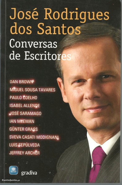 CONVERSAS DE ESCRITORES. Diálogos com os Grandes Autores da Literatura Contemporânea [Dan Brown Miguel Sousa Tavares Paulo Coelho Isabel Allende José Saramago Ian McEwan Günter Grass Sveva Casati Modignani Luis Sepúlveda Jeffrey Archer]. *** José Rodrigues dos Santos *** Lisboa: Gradiva, 2010. (23 x 15 cm.) com 254 + [2] pp. Ilustrado com retratos dos escritores entrevistados a p/b. Capa flexível, com badanas. Exemplar razoável. Capa com marcas de manuseamento, alguns vincos discretos e um leve desgaste nas margens e na lombada, onde apresenta mesmo uma pequena arranhadela. Apesar de tudo, de um modo geral, encontra-se ainda em bom estado e limpa. Páginas bem conservadas e limpas. *** Primeira edição deste livro que nos traz «entrevistas a dez dos principais escritores da literatura universal contemporânea e ainda as histórias de bastidores dos seus encontros com José Rodrigues dos Santos. (Índice na imagem 7). Há muito esgotado. *** Portes: envio gratuito em correio normal (tarifa especial para livros) * envio em correio registado: 1,70