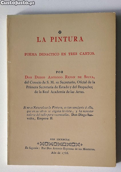 SILVA (Don Diego Antonio Rejon de). - LA PINTURA - Poema didactico en tres cantos. Murcia, Caja Murcia, 1985. In-8 135 pp. Br. Capa com leve. Oxidações marginais.