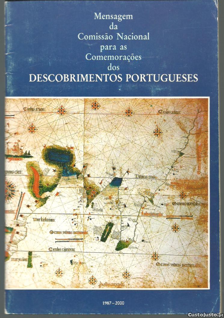 MENSAGEM DA COMISSÃO NACIONAL PARA AS COMEMORAÇÕES DOS DESCOBRIMENTOS PORTUGUESES - 1987-2000. *** [Comissão Nacional para as Comemorações dos Descobrimentos Portugueses] *** Nota Prévia: E. H. Serra Brandão [Presidente da Comissão Nacional] *** [Sem ind. de local: Lisboa]: [Sem ind. de editor: Comissão Nacional para as Comemorações dos Descobrimentos Portugueses], [Sem ind. de ano: 1987 (?)]. (21 x 14 cm.) com 15 + [1] pp. Capa flexível. Exemplar razoável. Capa com marcas de manuseamento, pequenas perdas de cor em alguns pontos e um pouco gasta nas margens e na lombada. Globalmente, apesar de algo envelhecida, está ainda apresentável. Páginas bem conservadas e limpas. *** Primeira edição deste opúsculo publicado no âmbito das iniciativas promovidas entre 1987 e 2000, para as comemorações dos 500 anos de «alguns dos marcos mais importantes dos Descobrimentos Marítimos [portugueses] que tão profundas repercussões tiveram na vida da Humanidade.» (...) «A mensagem que se segue é uma contribuição para as Comemorações: ela constitui uma visão moderna do fenómeno dos Descobrimentos e poderá, eventualmente, servir de base às alocuções a proferir em todo o País e no estrangeiro na abertura ou no âmbito destas históricas efemérides.» Pouco vulgar. *** Portes: envio gratuito em correio normal (tarifa especial para livros) * envio em correio registado: 1,70