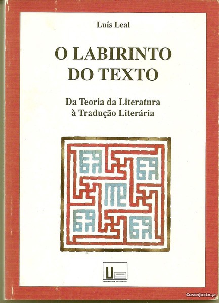 O LABIRINTO DO TEXTO. Da Teoria da Literatura à Tradução Literária. *** Luís Leal [Professor Associado da Universidade Autónoma de Lisboa] *** Prefácio: Justino Mendes de Almeida *** Lisboa: Universitária Editora, 1994. (21 x 15 cm.) com 162 + [2] pp. Capa flexível. Exemplar razoável. Capa com marcas de manuseamento, manchas, pequenas perdas de cor em alguns pontos e um pouco gasta nas margens e na lombada, encontrando-se, apesar de tudo e de um modo geral, ainda muito apresentável. Páginas bem conservadas e limpas. *** Primeira edição desta obra que ensaia uma profunda reflexão sobre os problemas e os limites da tradução literária. (Índice completo nas imagens 6 a 8). *** Portes: envio gratuito em correio normal (tarifa especial para livros) * envio em correio registado: 1,70