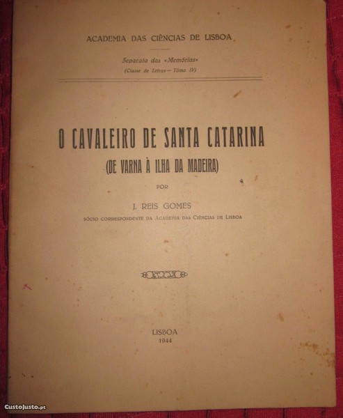 REIS GOMES, Major J. O Cavaleiro de Santa Catarina (De Varna à Ilha da Madeira), Lisboa: Academia das Ciências de Lisboa, Separata da Memórias, 1944. [28 p.]