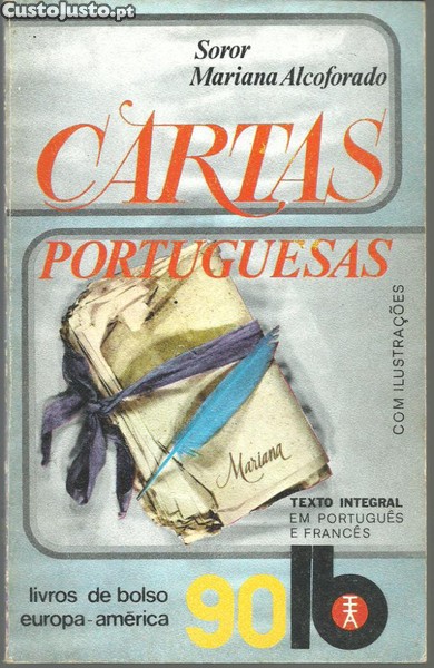 CARTAS PORTUGUESAS. *** Soror Mariana Alcoforado *** Tradução de Nuno de Figueiredo *** Ilustrações de José Ruy *** [Sem ind. de local: Mem Martins (?)]: Publicações Europa-América, 1974. Colecção "Livros de Bolso Europa-América" - 90. (18 x 11,5 cm.) com 121 + [3] pp. Com algumas ilustrações a p/b.. Capa flexível. Exemplar razoável. Capa com marcas de manuseamento, pequenas perdas de cor em alguns pontos, vincos discretos e um ligeiro desgaste nas margens e na lombada. Apesar de um pouco envelhecida, de um modo geral, está ainda muito apresentável. Páginas globalmente bem conservadas e limpas, embora apresentem um tom amarelecido, próprio do papel, e algumas pequenas manchas de acidez (de reduzida importância e atingindo praticamente apenas os cortes). *** Primeira edição na colecção (e presumivelmente da tradução) das Cartas Portuguesas, atribuídas a Soror Mariana Alcoforado, que apesar da polémica que envolve a questão da sua verdadeira autoria, são consideradas uma obra-prima e um caso único na literatura universal, «testemunho, na opinião de um crítico francês, de "uma paixão como nunca houve mais nobre, mais grave, nem mais ardente". «Esta edição apresenta, além da tradução portuguesa, o texto da primeira edição francesa e uma breve nota crítica em que se dá conta dos principais problemas postos pelas Cartas Portuguesas. *** Portes: envio gratuito em correio normal (tarifa especial para livros) * envio em correio registado: 1,70