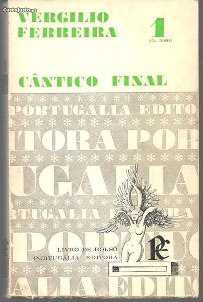 CÂNTICO FINAL. *** Vergílio Ferreira *** Lisboa: Portugália Editora, [Sem ind. de ano: provavelmente do início da década de 1970]. Colecção: Livro de Bolso - 1. (18 x 11,5 cm.) com 228 + [4] pp. Capa flexível. Exemplar razoável. Capa com marcas de manuseamento, algumas manchas, pequenas perdas de cor em alguns pontos e um pouco gasta nas margens e na lombada, que apresenta também vincos de abertura (pouco pronunciados). Globalmente, apesar de um pouco envelhecida, está ainda apresentável. Páginas, de um modo geral, bem conservadas e limpas, embora apresentem um ligeiro amarelecimento e algumas pequenas manchas (raras, de reduzida importância e incidindo sobretudo nos cortes). *** Julgo tratar-se da 3. edição absoluta (a primeira na colecção) deste romance de Vergílio Ferreira, que seria adaptado para o cinema por Manuel de Guimarães, que, contudo, faleceria antes da sua estreia. *** Portes: envio gratuito em correio normal (tarifa especial para livros) * envio em correio registado: 1,70
