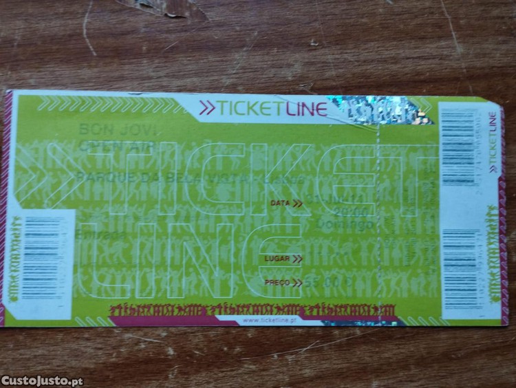 Preço: 5 €Vintage Bilhete Bon Jovi Open Air Parque Bela Vista Lisboa 31.07.2011
