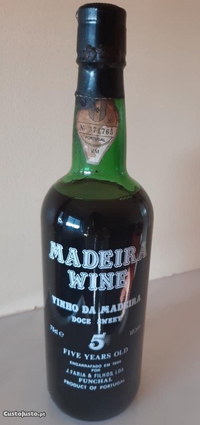 Garrafa de Vinho da Madeira J. Faria & Filhos, doce, 7,5 dl, selada e engarrafada em 1996.