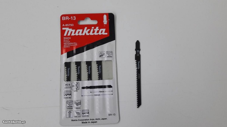 Vendo lâmina / folha / serra tico-tico BR13 da marca nipónica Makita. Está NOVA pois ainda está na embalagem original. "Corte sem estilhamento em madeira".