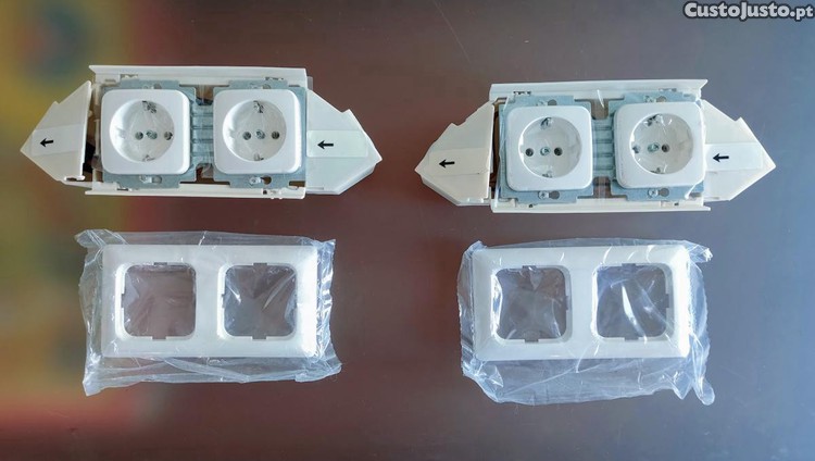 Tomadas duplas de 3 fios condutores, fabricado na Alemanha, para encastrar em parede. Material novo a estrear, nunca foram usadas nem montadas.