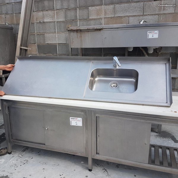 Preço: 115 €Lavatorio inox com torneira para bancada