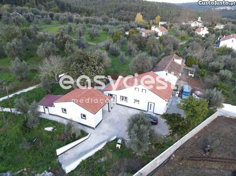 Esta propriedade é constituída por moradia de tipologia T3 totalmente renovada, uma garagem ampla com lavandaria e zona de bancada com cozinha, dois tanques piscinas exteriores, zona de lazer com acessos por via pedonal e ciclovia e casa de máquina de extração de água de furo. Na moradia principal teremos uma sala ampla em open space com cozinha equipada, três quartos sendo que dois são suítes com Wc privados, despensa e Wc principal.