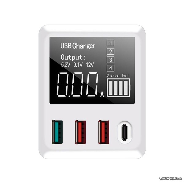 Inclui display com a informação completa do estado de carga em cada porta independente.