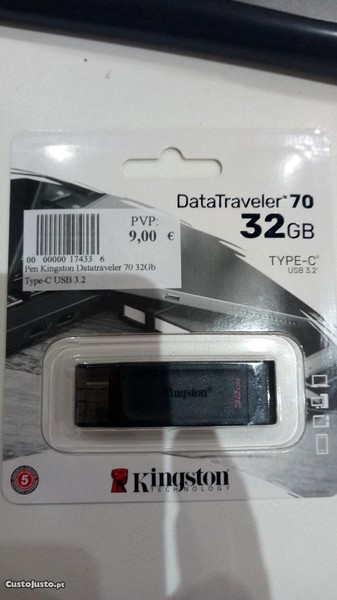 Preço: 5 €Pen Kingston Datatraveler 70 32Gb Type-C USB 3.2