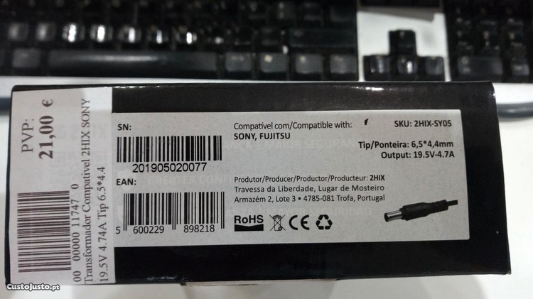 Preço: 10 €Transformador Compatível 2HIX-SY05 SONY 19.5V 4.74