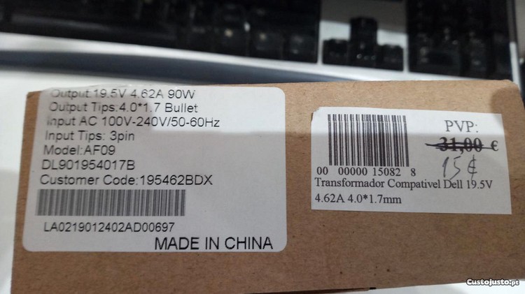Preço: 10 €Transformador Compatível Dell 19.5V 4.62A 4.0 1.7
