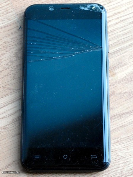 O aparelho carrega e liga mas não é possível visualizar por ter o ecrã partido, visível nas fotos.