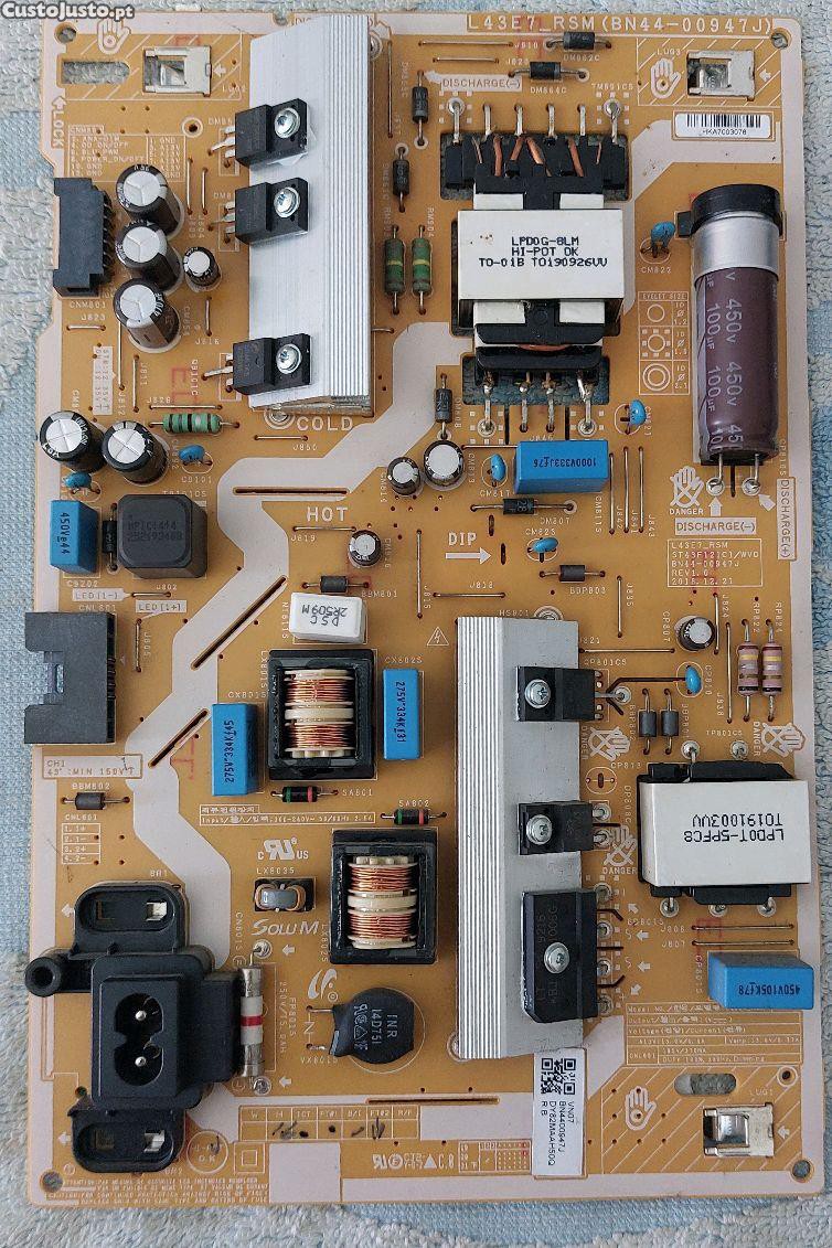 Fonte de alimentacao retirada de tv UE43RU7025K com ecrã off.