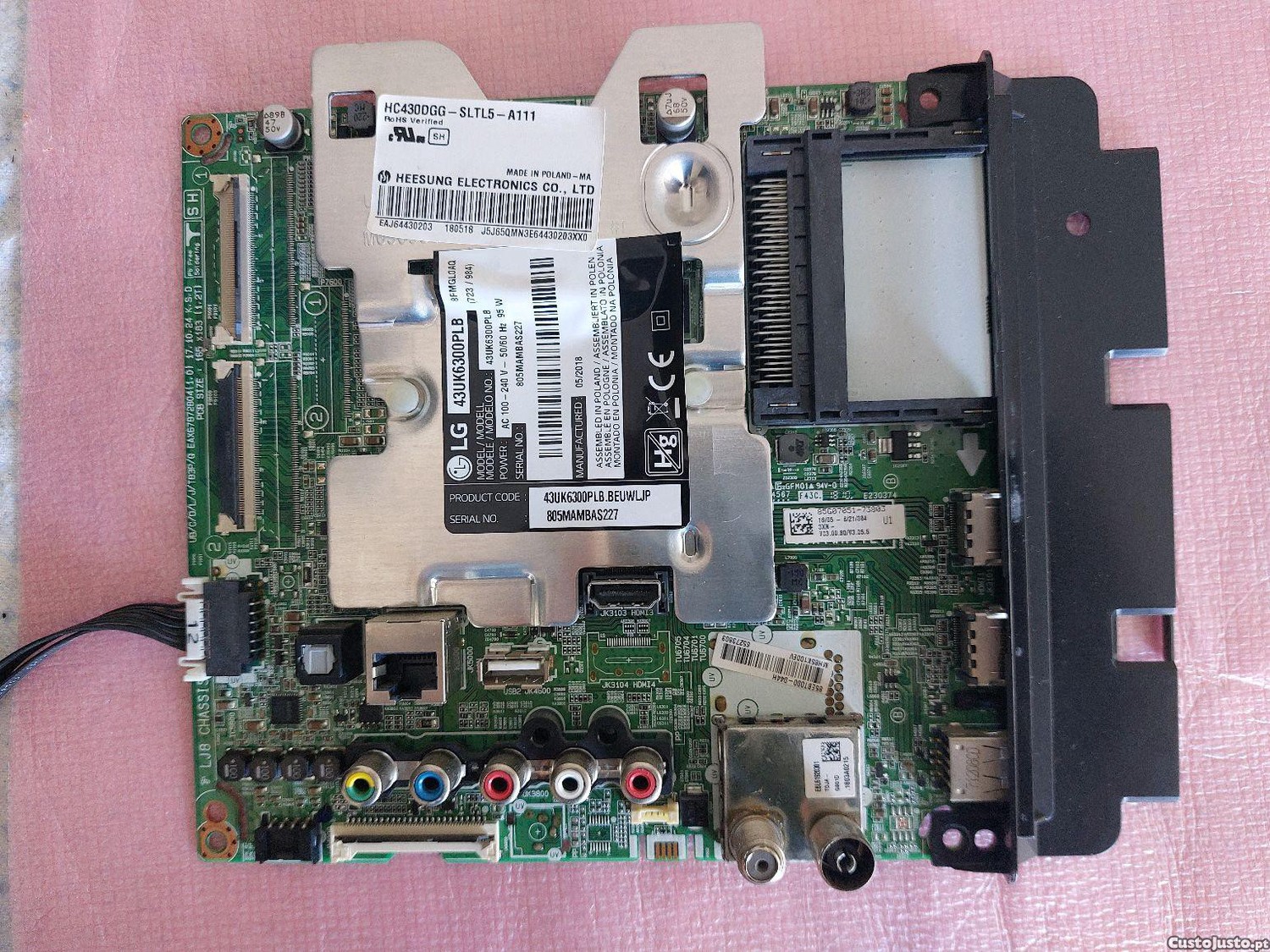 Mainboard retirada de tv Lg43UK6300PLB com ecrã off.