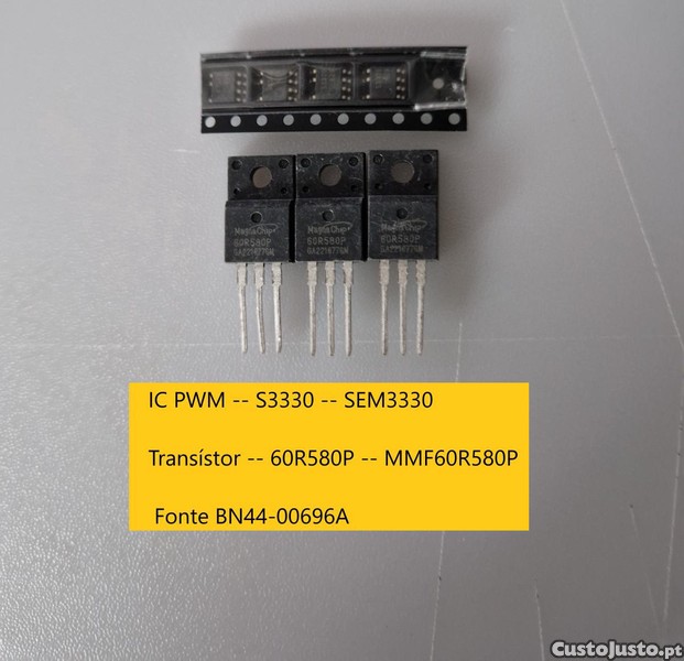 Vendo o conjunto 1 ic S3330 = sem3330 e 1 transístor 60R580P = mmf60r580p.