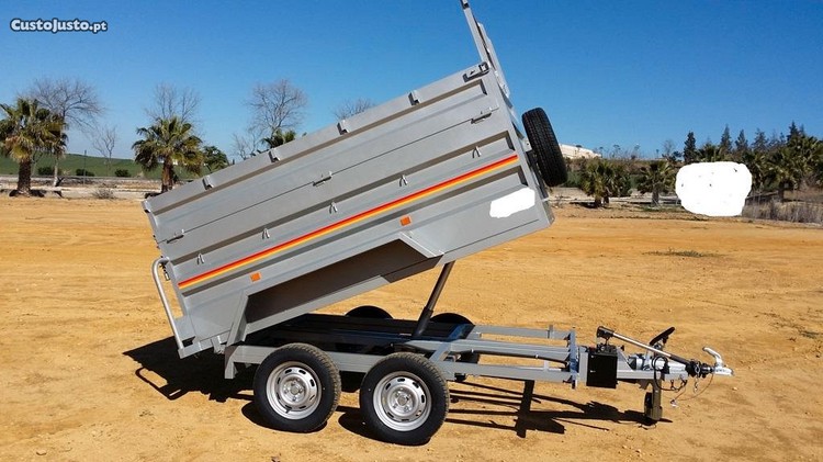 atrelado reboque basculante de carga geral e diversa , dois eixos de 1000 kg travão de inercia , travão de parque , 5 rodas novas jante 13 ,duas meias portas traseira e cavalete