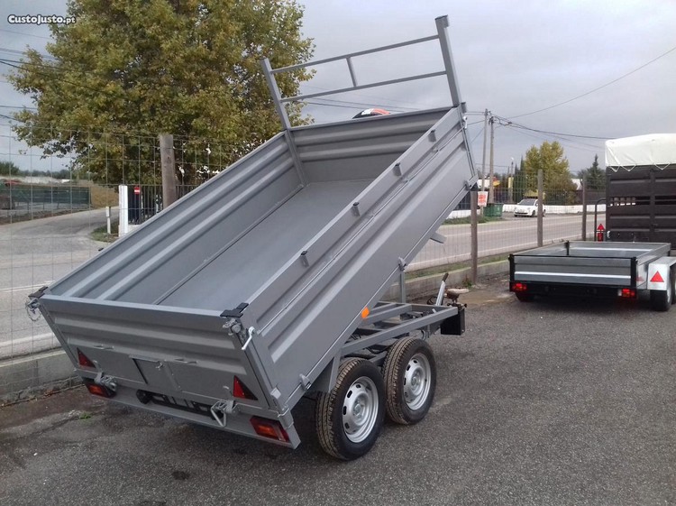reboque lancimarmores basculante de 1500 kg medidas de 2600x1600x500 com malhal desmontável com taipais traseiro e laterais desmontáveis fica uma plataforma