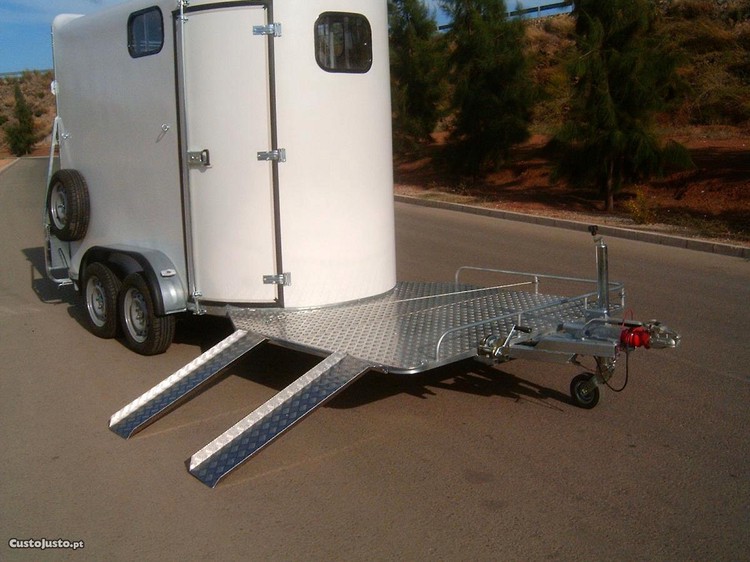 Este reboque atrelado para dois cavalos tem uma belíssima construção e tem um porta charretes incluido