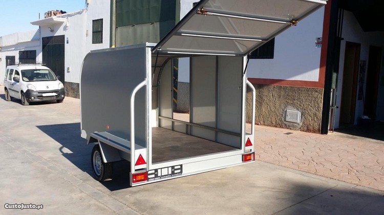 atrelado reboque caixa fechada , construido em chapa de aluminio lacada e tubo estrutural