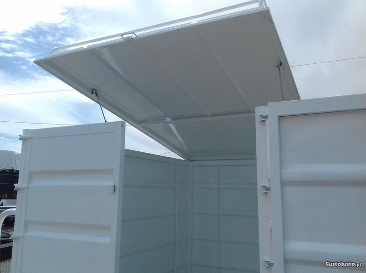 Tem uma tampa com aberturas basculante , macacos a gás , e ainda com suporte para cargas exteriores no tejadilho . tem também reservatório de agua com torneira .