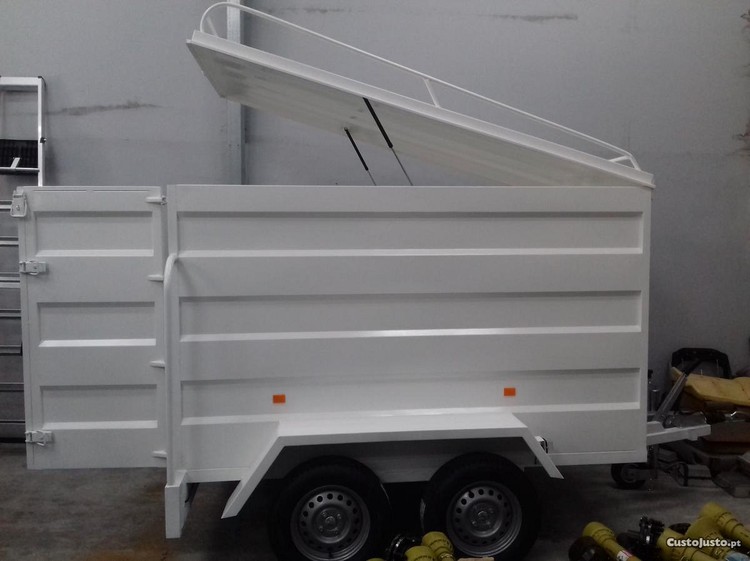 tem duas portas traseiras e monta cargas no tejadilho ( reboque de caixa fechada )