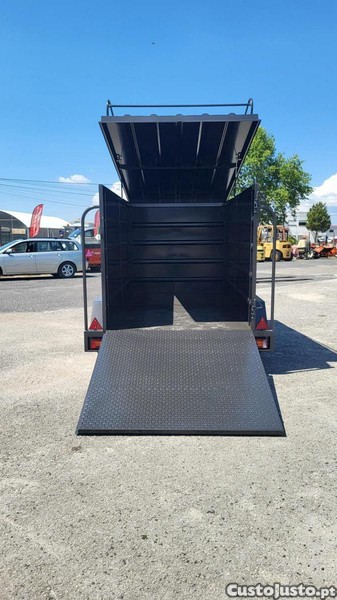 Tem porta trazeira de abrir e tambem a fazer de rampa , com fechadura de segurança e fechos de mola ,