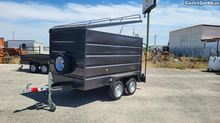 tem uma tampa com abertura basculante com macacos a gaz , ( para poder andar de pé dentro do atrelado como esta na foto ) e ainda com suporte para cargas exteriores no tejadilho