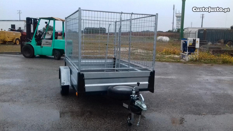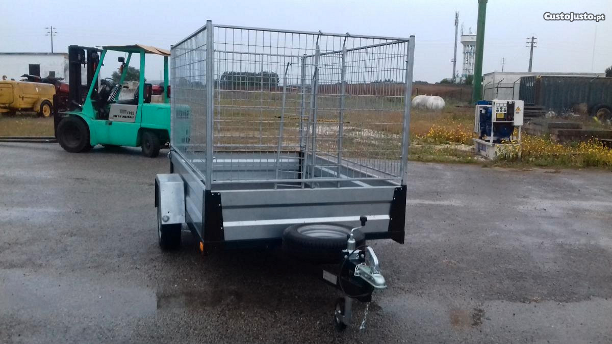 o atrelado tem painéis de rede galvanizada , desmontaveis com porta traseira de abrir para cima