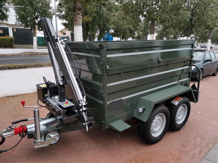 Atrelado Reboque Mercadorias Carga Geral Basculante Electro - Hidraulico Com Grua Taipais Altos Desmontaveis