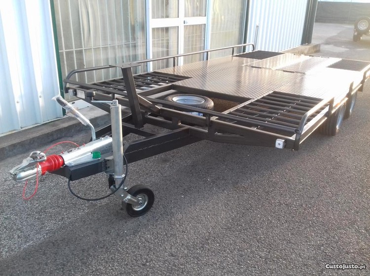 equipado com rampas de carga por baixo na lateral , dois eixos por baixo do estrado , de 1000 kg cada , travão de inercia , roda jockey de 60 mm automatica