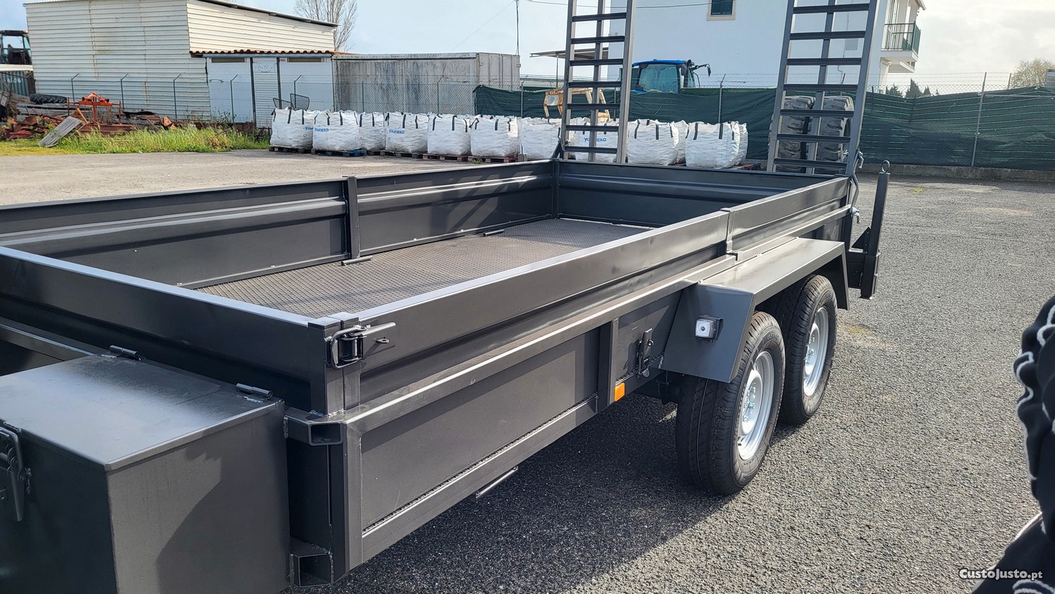 Atrelado Reboque Plataforma Estrado Porta Máquinas Bobcat Mini Giratória Tractor Carga Geral Mercadorias Novo