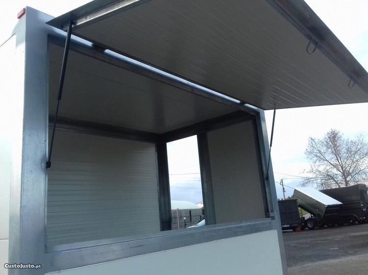 construido em tubo e chapa galvanizada e zincada , painel isolante ,tem 3 rodas jante 13 ,
