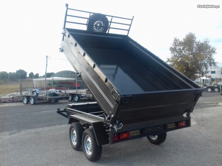 reboque lancimarmores basculante / tri - basculante electrico com bateria propria de 2700 kg medidas com 3000x2000x500 com malhal desmontável com taipais traseiro e laterais desmontáveis fica uma plataforma
