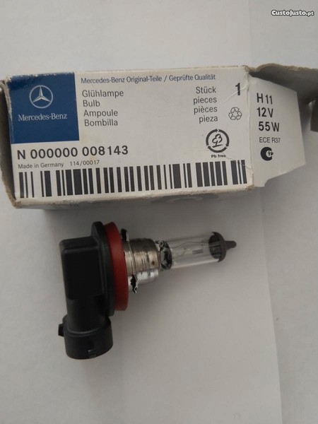 Vendo lampada H11 12 V 55 W original Mercedes N 000000 008 143. A lampada nunca foi instalada e esta dentro da cx original Mercedes. Dá em qualquer outra viatura que use H11.