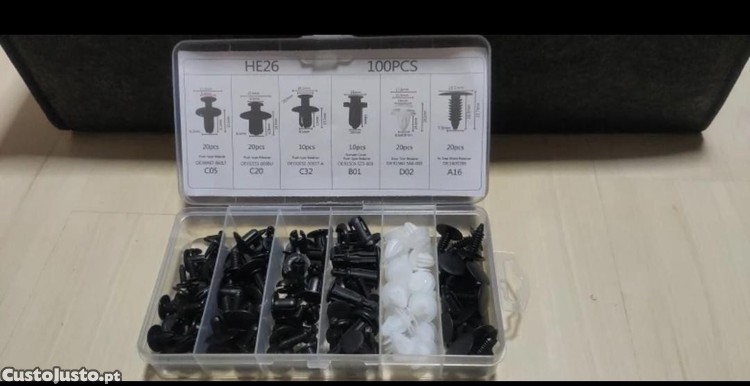 Preço: 14 €Kit de 100 Rebites Nylon Molas de Friso Clipes de Fixação Automóvel
