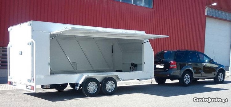 Atrelados reboques fechados , tampas basculantes para transporte de carros automoves motas viaturas , todos cobertos com abertura basculante rampas , aluminio fibra 1 eixo e dois eixos de 750 kg a 3500 kg de peso bruto