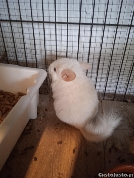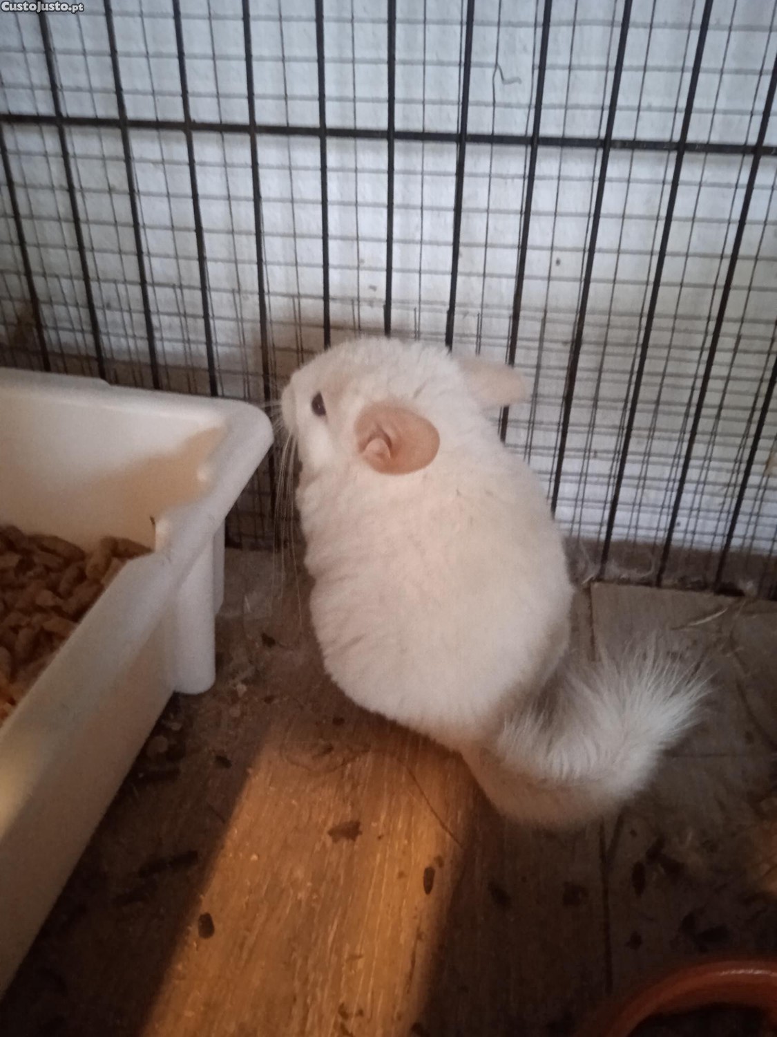 Chinchilas com 2meses desparasitadas, machos e femeas branco white, ebano, preto, branco mosaico muito fofinhas. Cada chinchila leva consigo um pouco de raçao e feno para se adaptar a sua comida.