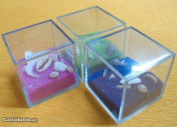 Cubo de acrílico com areia div. 4x4x4cm