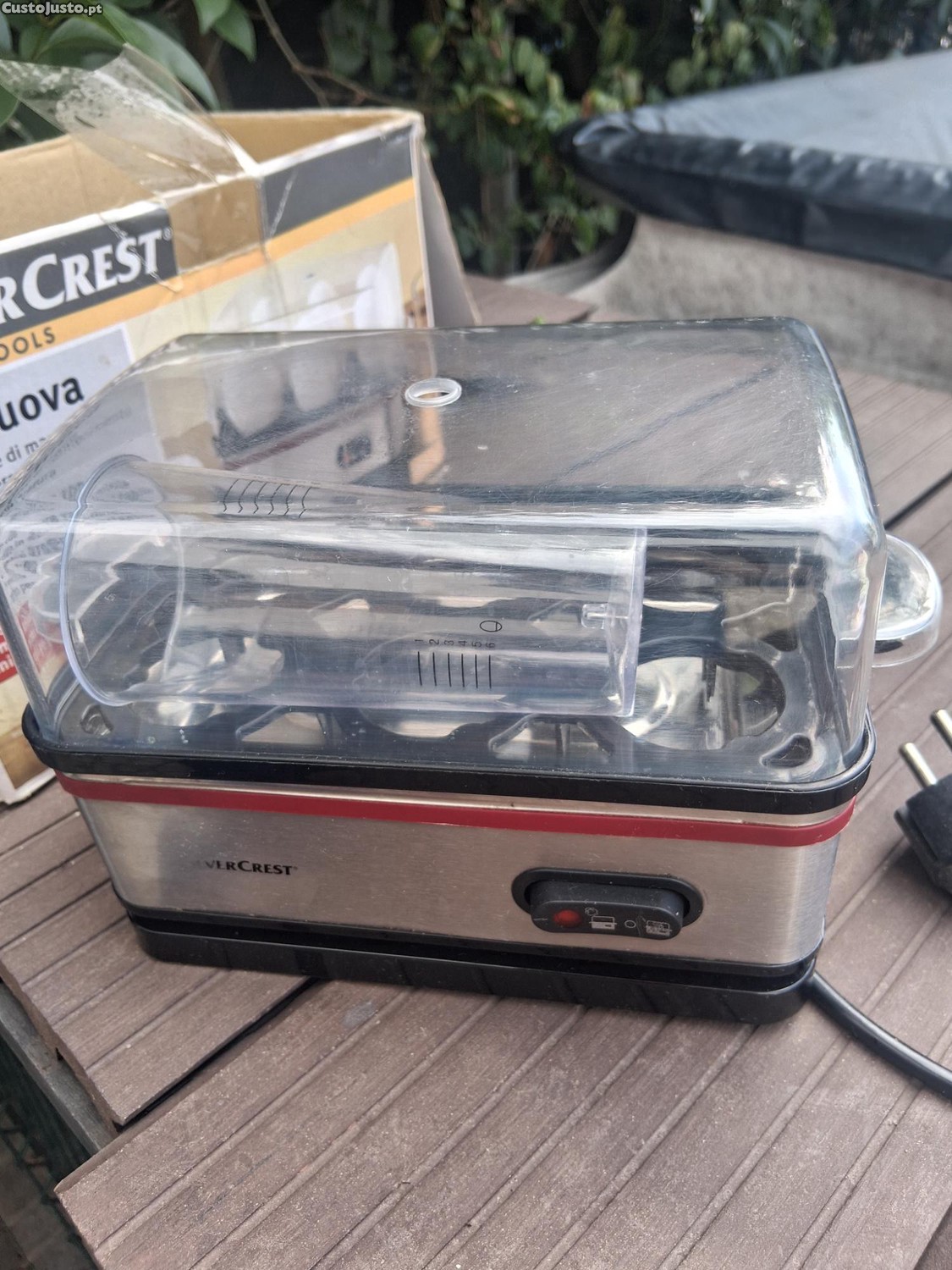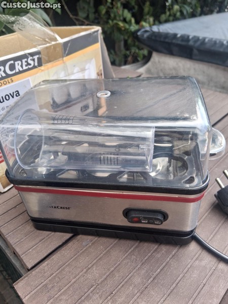 Este aparelho de cozinha da marca Silvercrest é um cozedor de ovos modelo SEKD 400 A1 Permite cozinhar ovos de forma prática e eficiente, com instruções de utilização incluídas.