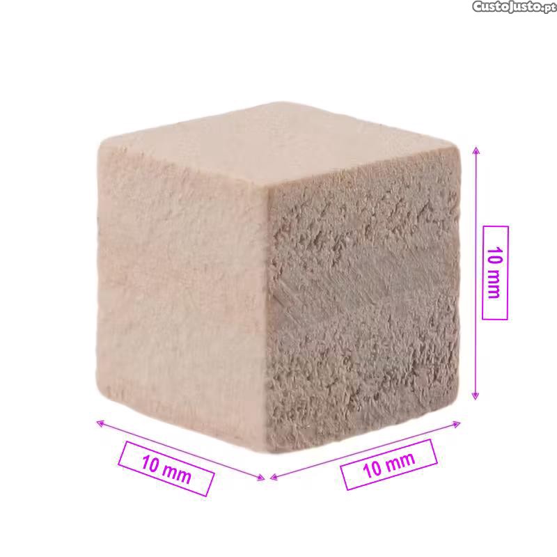 Cada bloco com 1 cm, apresenta uma textura única e tons de madeira clara.