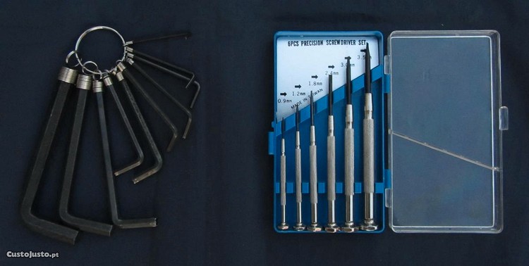 - 6 chaves de fendas (0.9 a 3.5mm)