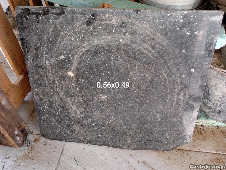 Preço: 10 €Pedra de Mármore Preta Medidas: 0,56 m x 0,49 m Nota: Está ligeiramente partida
