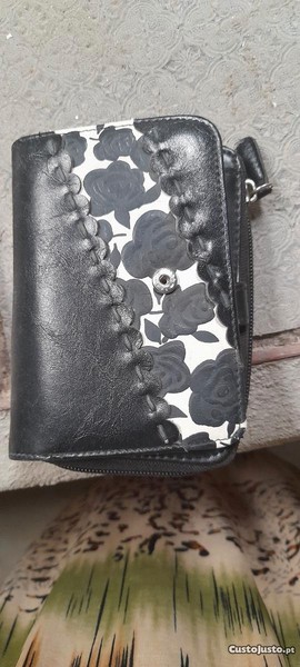 Preço: 2 €Carteira preta com apontamento em branco, como nova